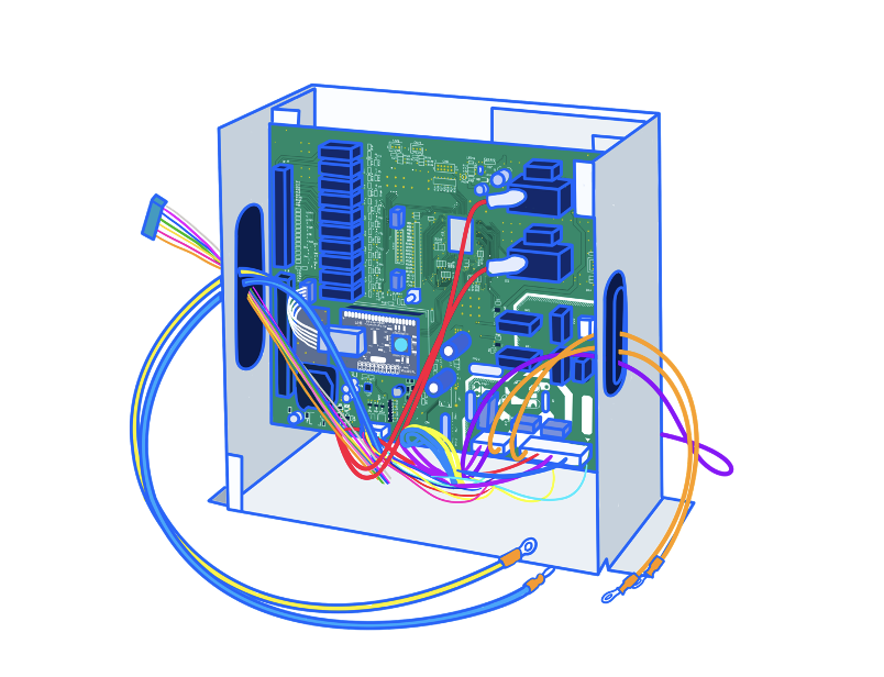 飲料用装置の制御装置において、客先仕様に基づく設計から部品選定・調達、基板製造、筐体(板金)製造、半完成品組立までを社内一貫生産体制で対応。設計から製造までを一貫してサポートし、高品質な制御装置を提供しました。